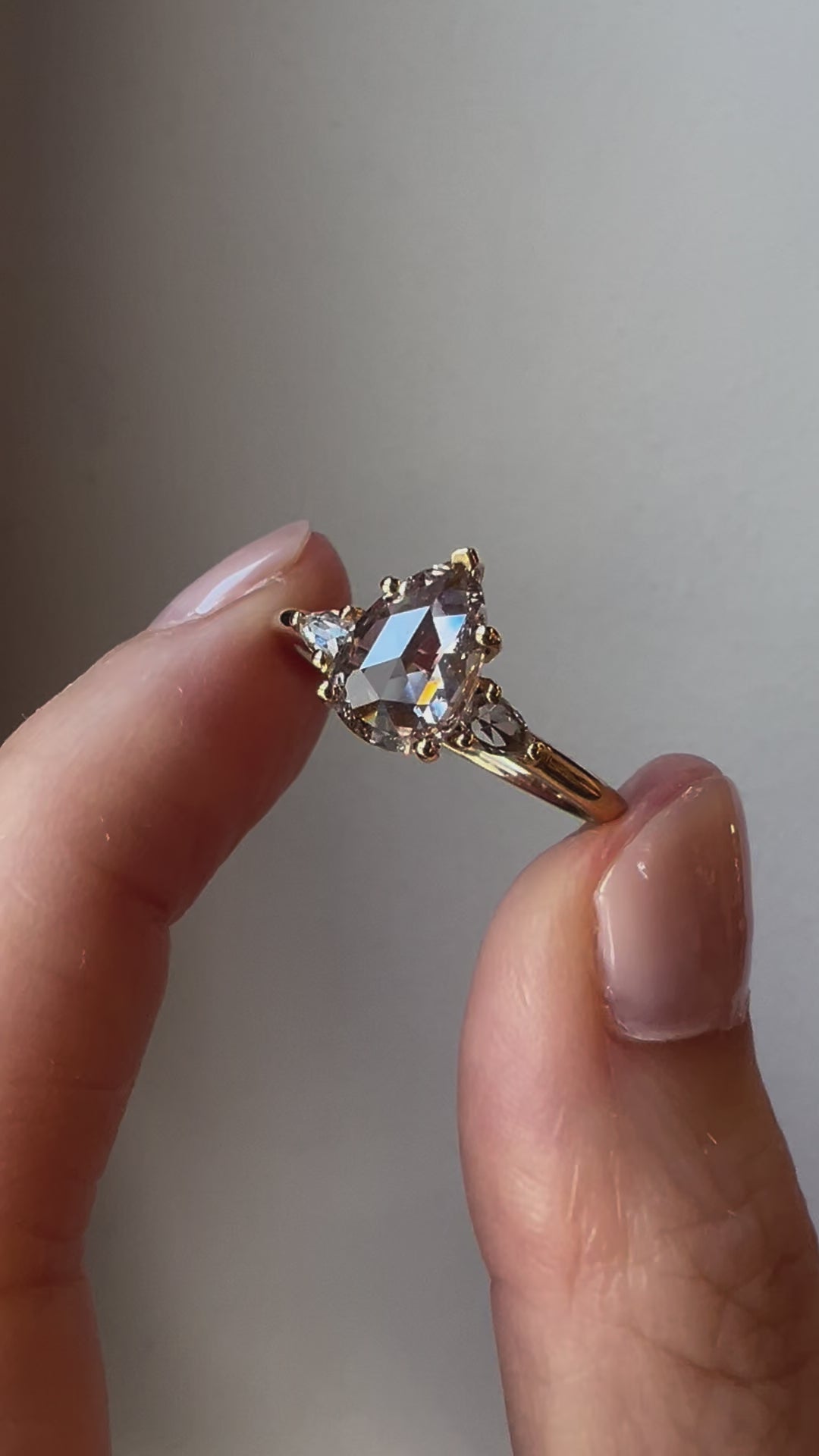 OOAK 1.00 Carat 3 Pear Rose Cut Diamond Ring